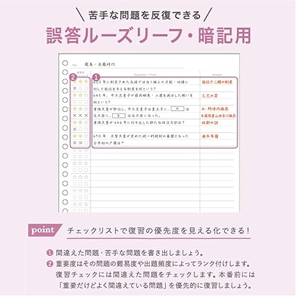 いつ何ページを解いたかをわかりやすく残せるので、復習タイミングを計画しやすい。